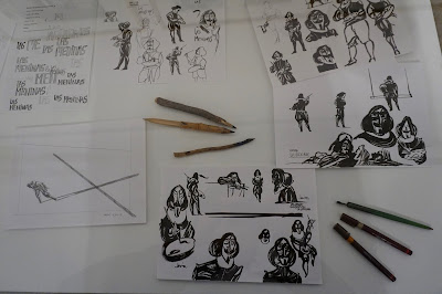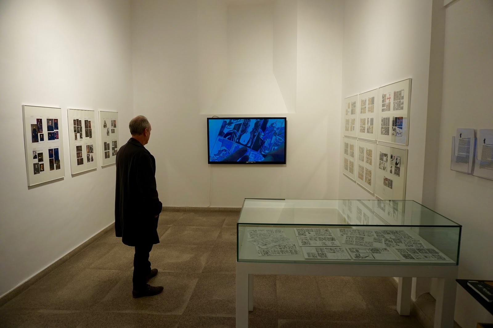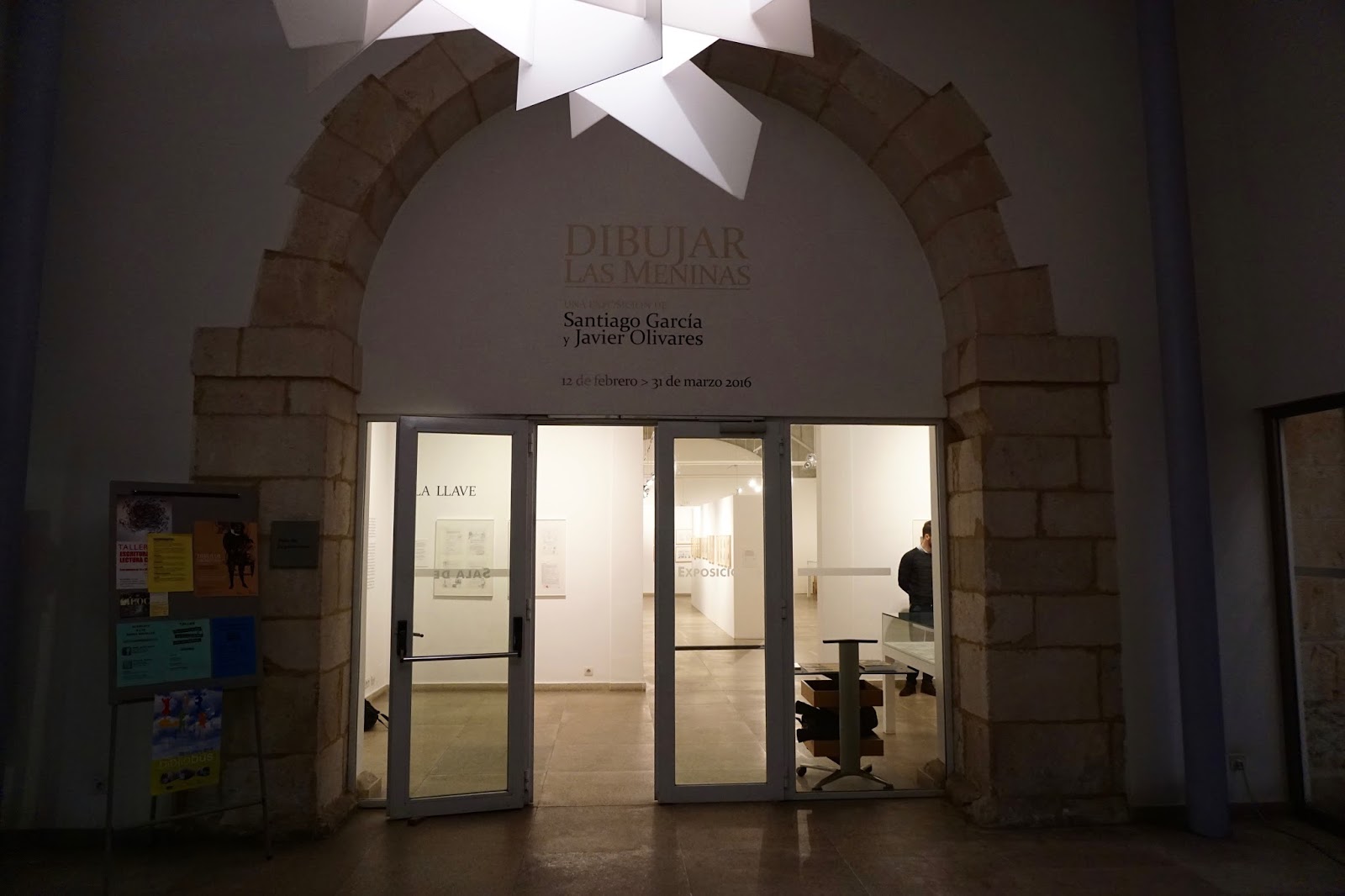 Llegamos a Vitoria casi directamente desde la inauguración de la exposición «Dibujar Las meninas» el pasado viernes en la Biblioteca Pública de Zamora. Si os interesa nuestra novela gráfica, os animo a que os acerquéis hasta la ciudad castellana y disfrutéis de un paseo por su precioso casco antiguo y de una visita a la muestra. Es la mejor exposición que se ha hecho sobre Las meninas, junto a la que se realizó en el Museo ABC de Madrid en 2014. El espacio de la Biblioteca es fantástico y nos ha permitido mostrar montones de originales, bocetos y materiales diversos organizados en tres secciones («La llave», «El espejo» y «La cruz», siguiendo la organización del propio libro). Creo que la exposición es sobre todo un bellísimo testimonio del minucioso trabajo realizado por Javier para este tebeo. Allí veréis montones y montones de dibujos, un auténtico mar de papel.